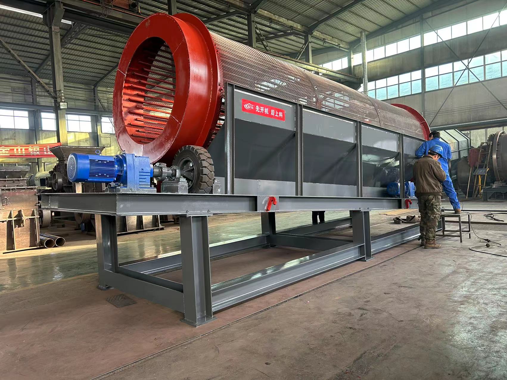 無軸滾筒篩由于其無軸設(shè)計,避免了物料纏繞在軸上的問題,不會出現(xiàn)復(fù)雜物料纏繞軸的問題,這使得它在處理大塊物料或復(fù)雜物料時具有優(yōu)勢,避免了主軸纏繞問題,同時還能防止篩孔堵塞。